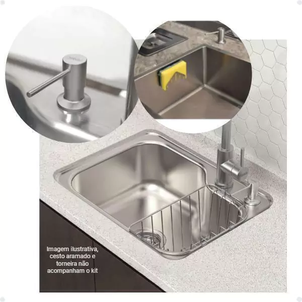 Cuba Tramontina Morgana 48 FX AC + Dosador + Porta Esponja